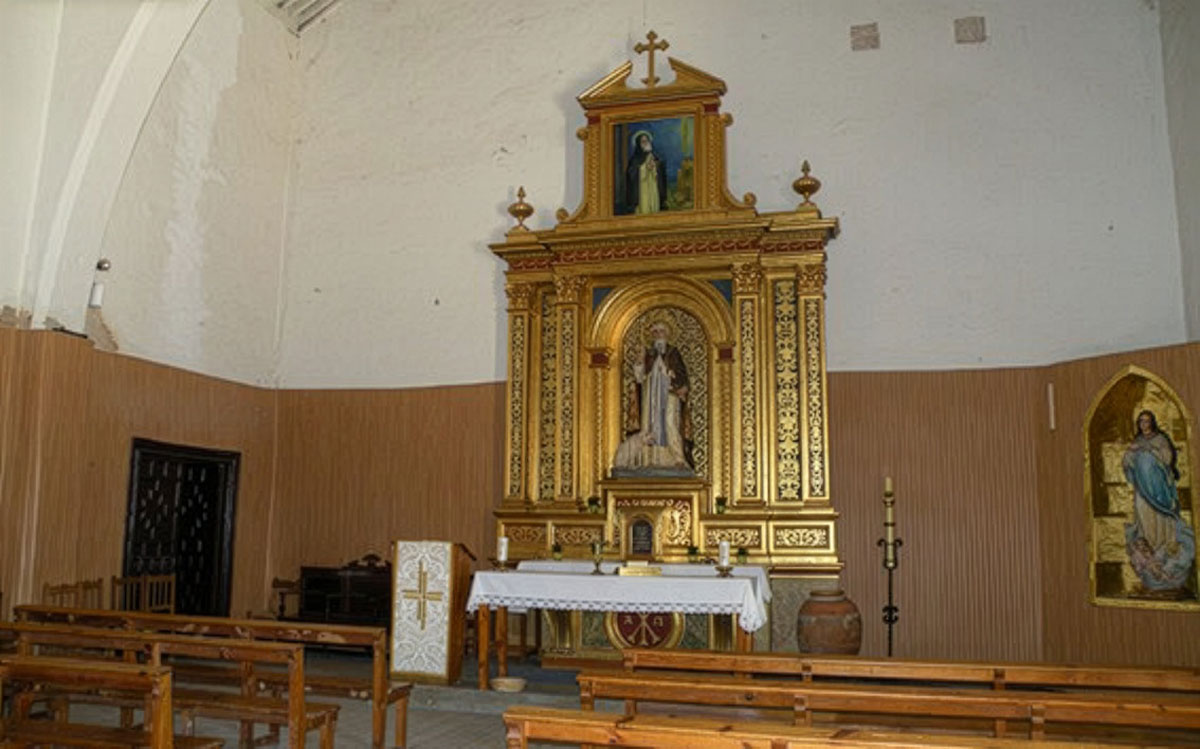 Aspecto interior de la ermita de San Antonio Abad antes de su cierre al público en 2010. El retablo dedicado al santo ocupaba el lugar del antiguo Hejal de la sinagoga medieval, ocultando las pinturas y estructuras originales que han salido a la luz tras la intervención. Foto: Beatriz Severino, periódico La Comarca