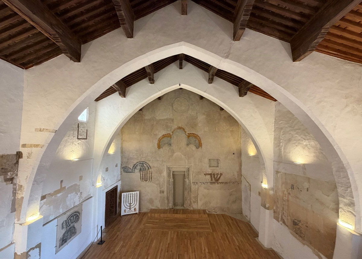 Ante sus ojos, la sinagoga mejor conservada de la Corona de Aragón. Sobre cimientos de época romana se eleva esta joya del arte mudéjar datada en 1410. En España, solo Toledo y Córdoba mantienen edificios similares a éste. Sus pinturas son únicas. Tras la Expulsión, se convirtió en convento provisional de los franciscanos y también en ermita, función que ha mantenido hasta hoy.